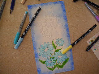 couldn’t wait to start on the daisies. I don’t know if blue daisies exist in