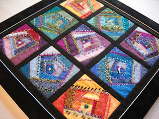 fabrics in those tones for each block. I then chose to use rayon embroidery