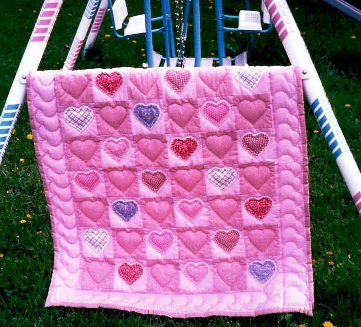 quilt with appliquéd hearts and do some hand sewing. My oldest daughter was