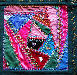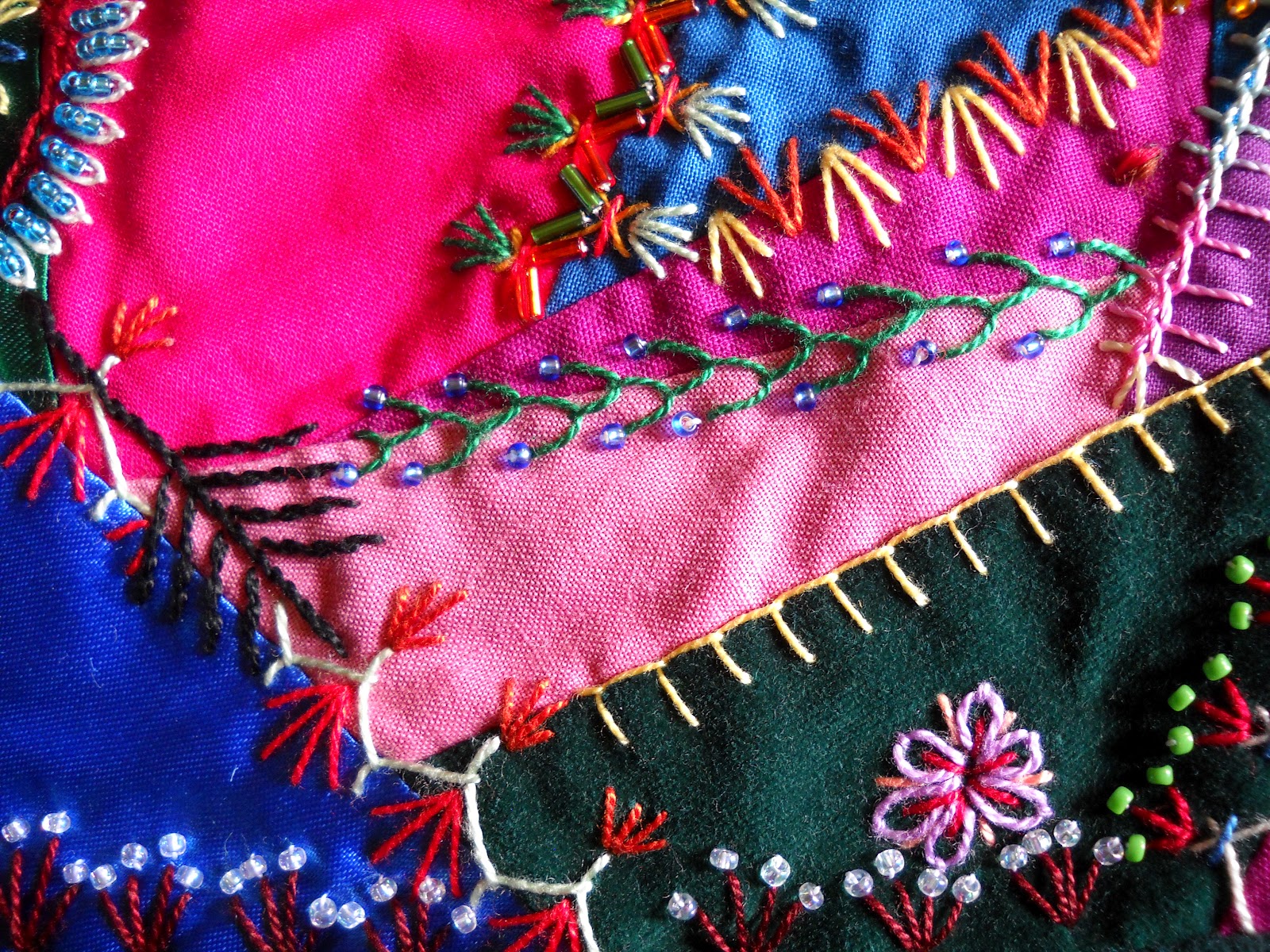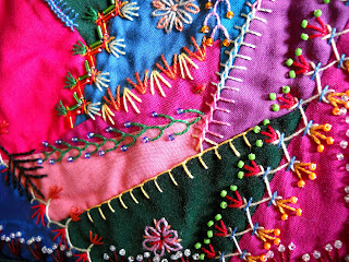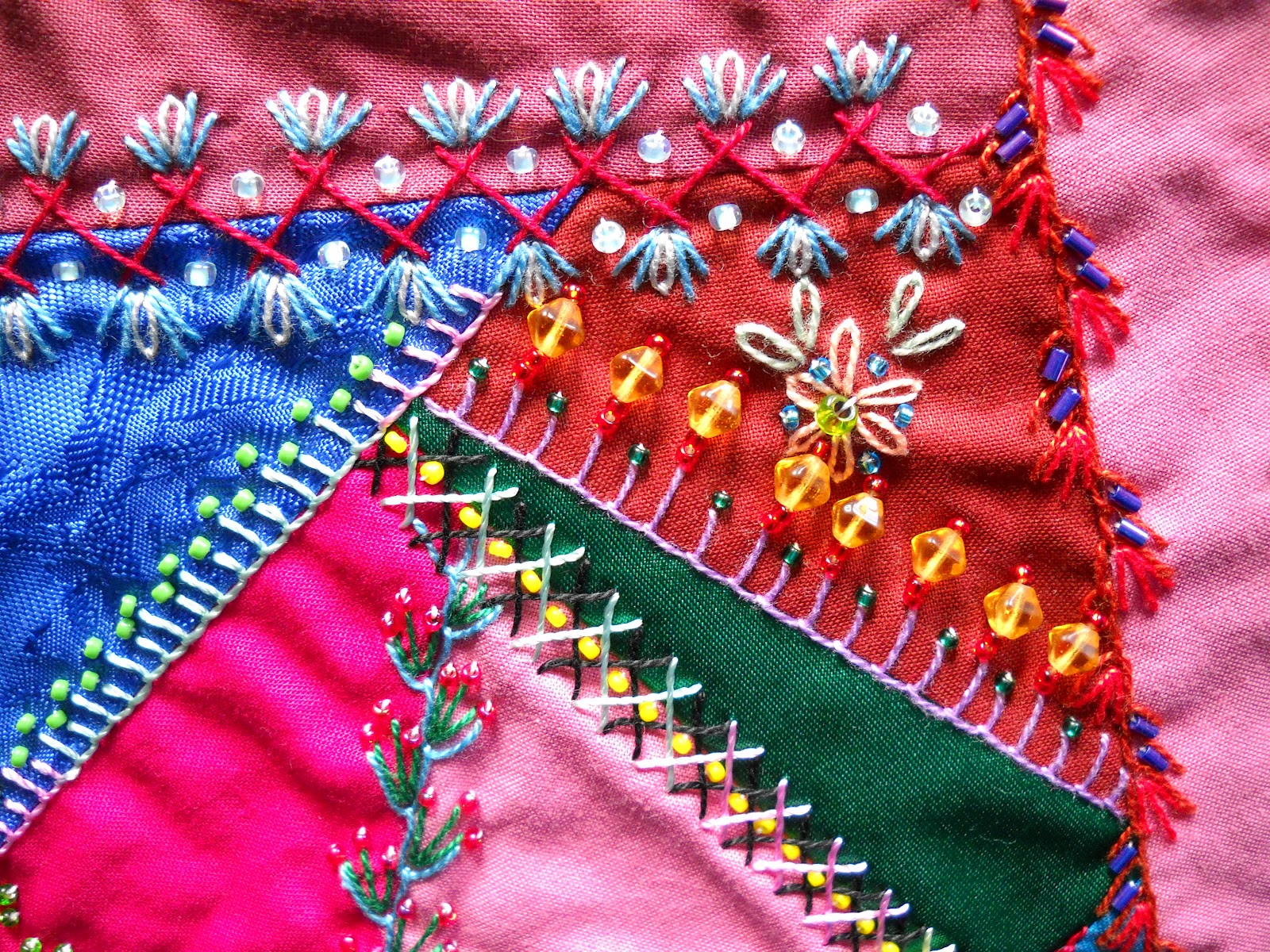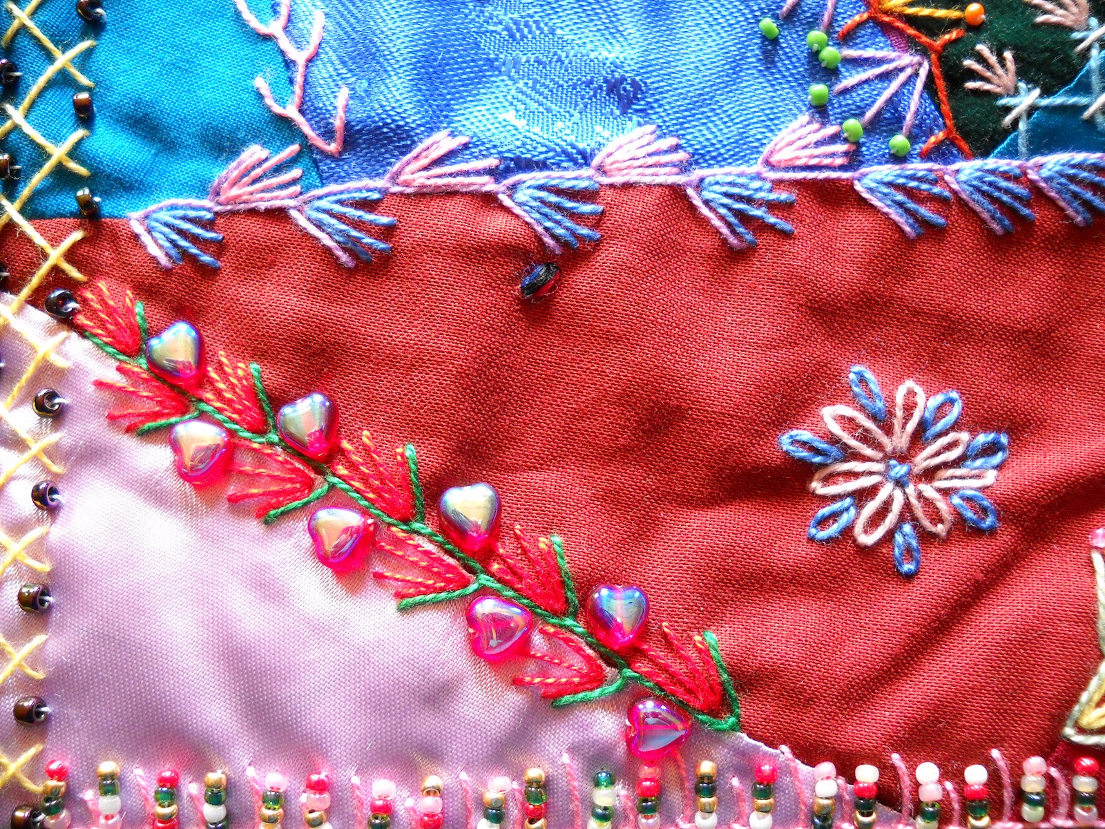 with the herringbone stitch in gold pearl cotton, and then added some straight