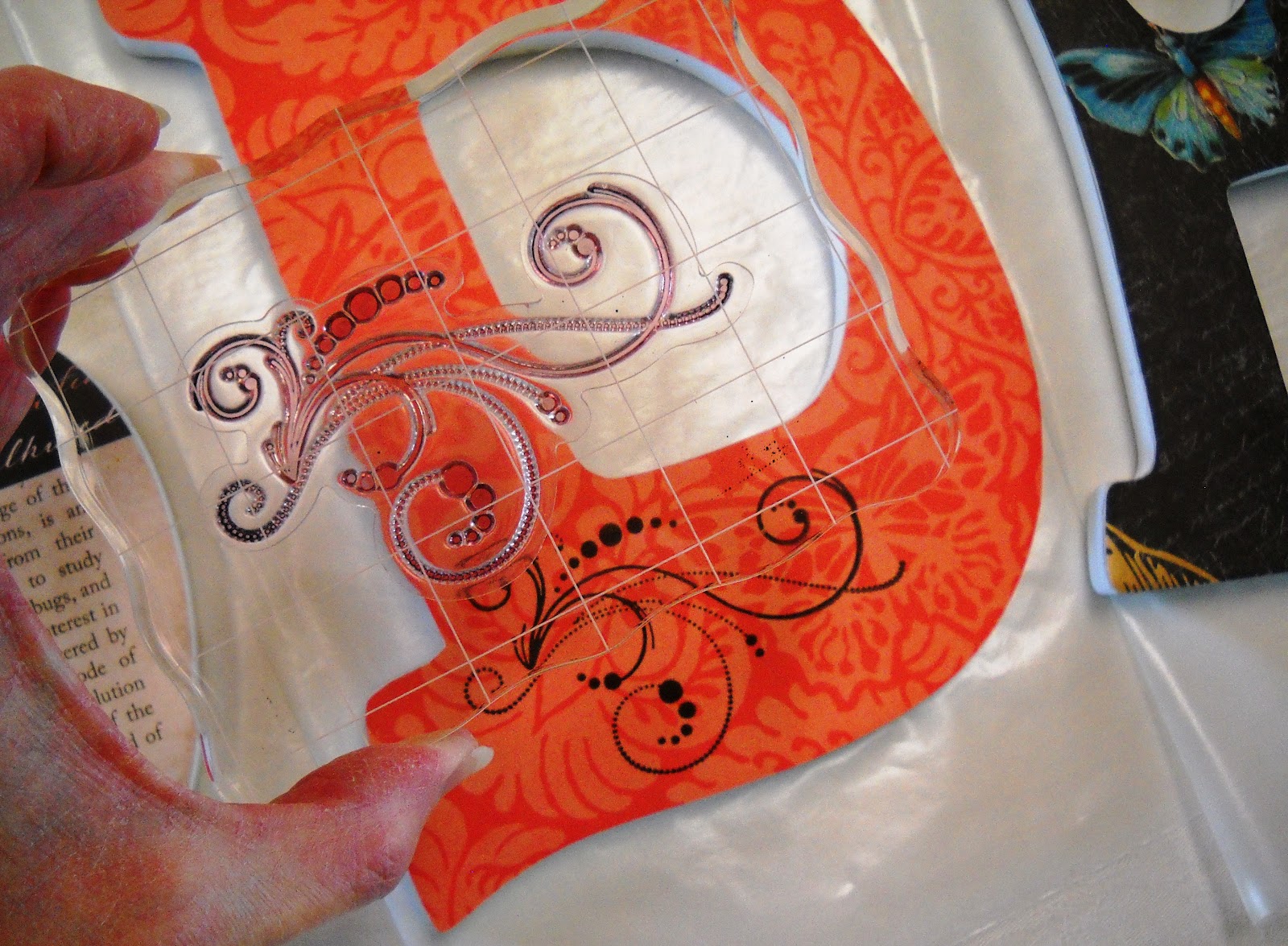 also stamped these lovely swirls in black over all the layering of paper glaze