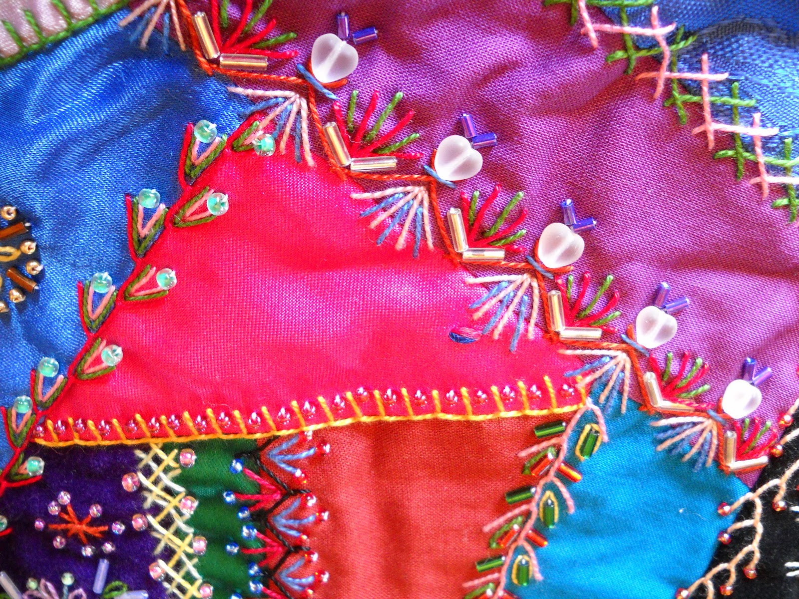 with a pretty olive green felted wool and machine quilted. I added swirls of