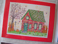 of a little autumn house surrounded by pumpkins and falling leaves. I printed these