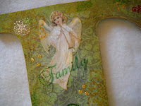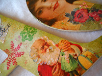 Victorian images, sparkly snowflakes, glitter and rhinestones. I added lovely scrapbook papers to the back. They