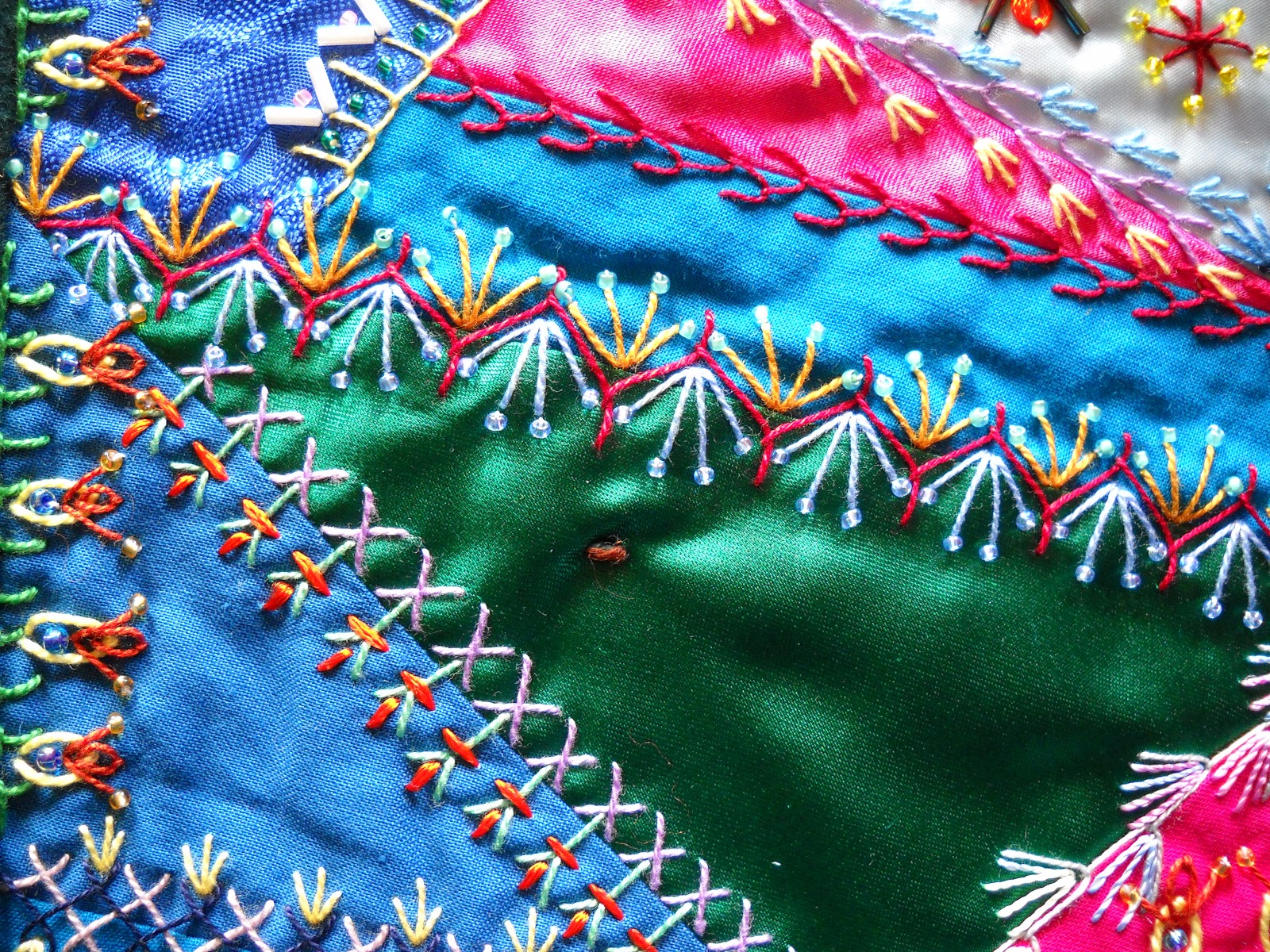 quilting thread. The beads on a lot of today’s crazy quilts are sewn on with a
