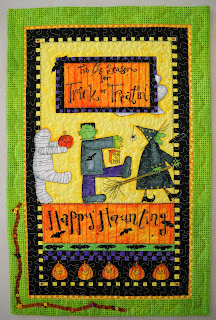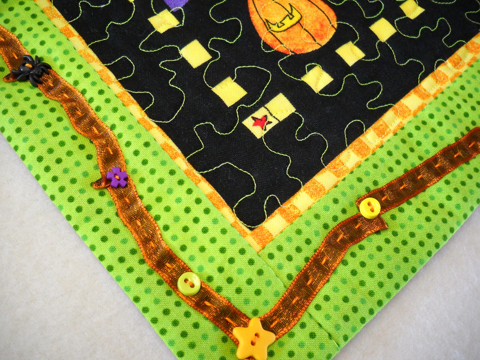 little quilt using a Halloween panel. Then I added a lime green border. The