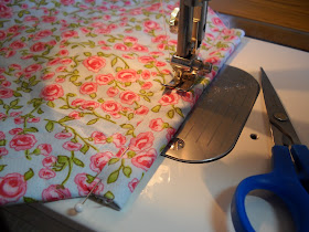 I then layered it with a cotton batting. I used Warm and Natural. And the lining fabric, sewed around the outside, leaving an opening to turn it right side out.
