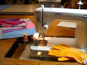 A couple of years ago I bought a Juki sewing machine and I just love it. I use it to machine quilt full and queen size quilts because the throat is very large. And I cannot quilt without my gloves made by Fons and Porter. They are a perfect fit and really grip the fabric.