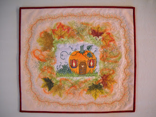 I also finished Pumpkin House, by adding a French fold binding to the edge