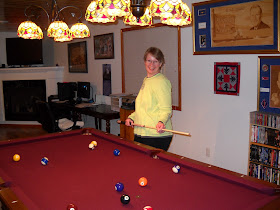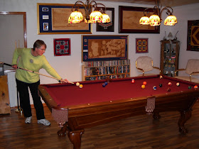 It has been a busy weekend again, time to relax with a game of pool with my husband Joe.