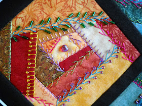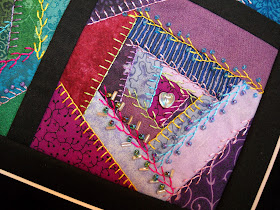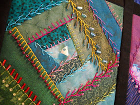 fabrics in those tones for each block. I then chose to use rayon embroidery