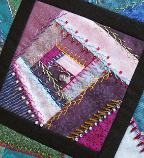 fabrics in those tones for each block. I then chose to use rayon embroidery