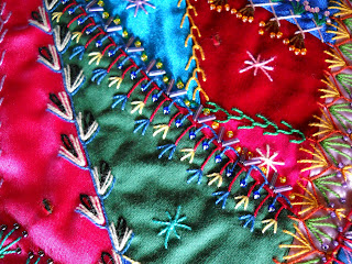 3. HOLY COW! This is awe-inspiring. I have always wanted to make a crazy quilt, but I can't figure out how to start. This is wonderful, not only is it a crazy quilt, but then it is embroidered too. WHO DOES THAT?!?!?!? I LOVE THIS!