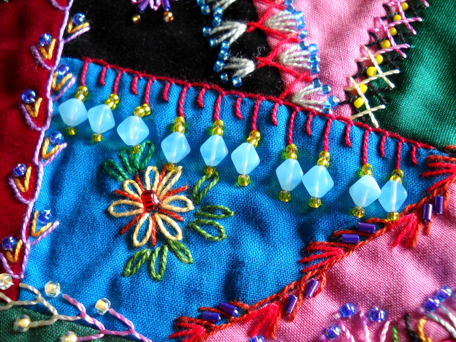 this block. They reminded me of Chinese lanterns. All this bead work keeps the