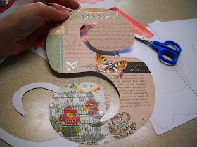 I love to give some of my paper art an aged appearance, so I inked the edges of each letter with brown ink by Memories. I just love this ink, as it is permanent and will not run with all the gluing I will put on.