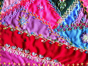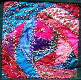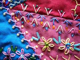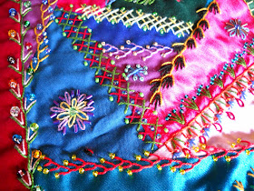 The concept of crazy quilting is all about filling in areas with stitch and beads. These flowers were a nice addition.