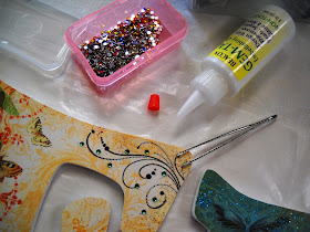 When the paper glaze was totally dried I added rhinestones to add a little sparkle.