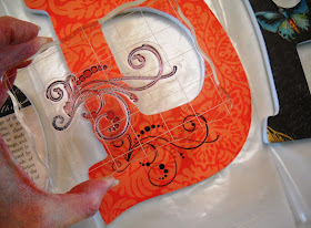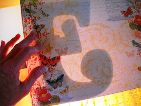 Here you can see what a great crafting tool a light box can be. It has a glass top with a bright light bulb underneath. This is great for tracing patterns, but in this case we were able to position the papers over each letter to maximize the beautiful details on the papers we were working with.