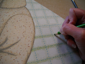 Once the coat was colored in, I then added lines with a marker over the grid lines I had penciled in. It needed more color, so I shaded over the lines with colored pencil.