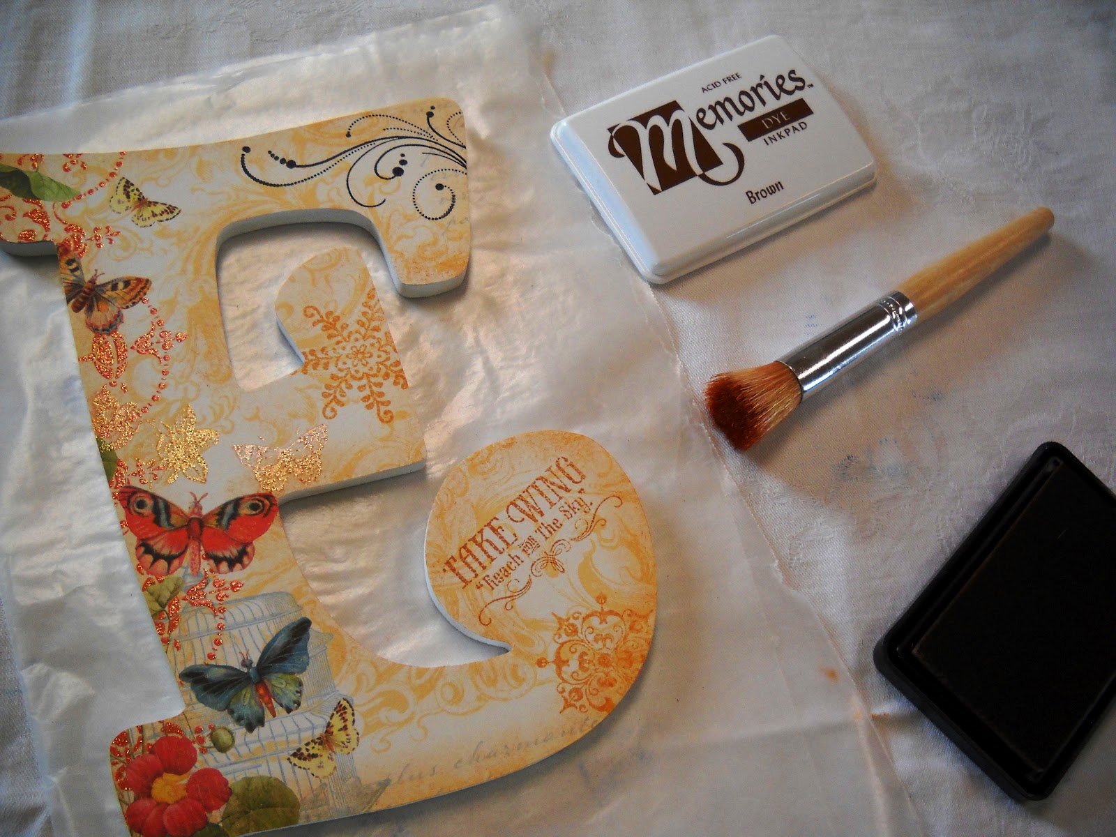 of my paper art an aged appearance, so I inked the edges of each letter with