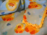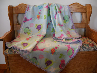 fabric. I added a beautiful ruffled crocheted edge to give the blanket that