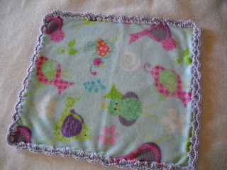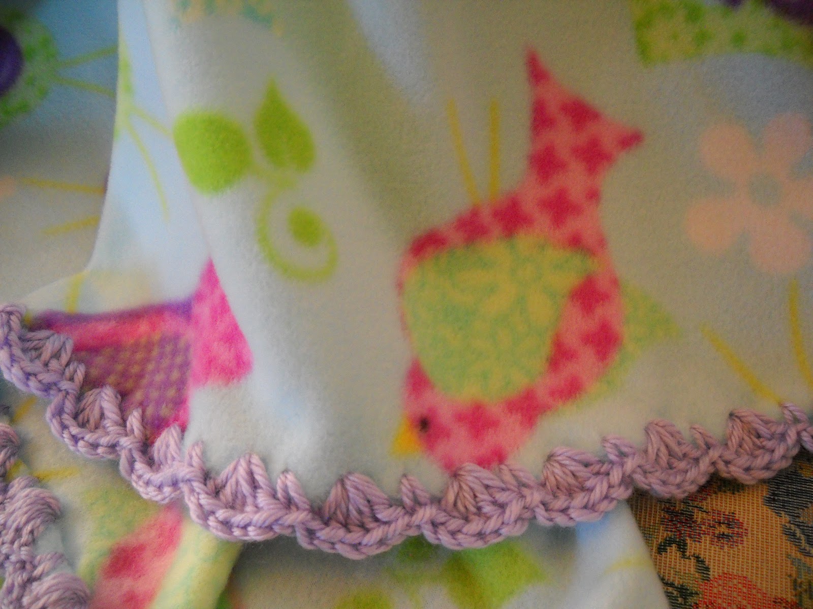 fabric. I added a beautiful purple ruffled crocheted edge to give the blanket