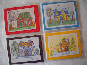 with a matching white envelope. They come in sets of 4 cards, each with a different image. Each card