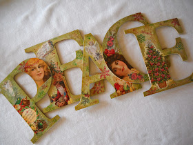 Victorian images, sparkly snowflakes, glitter and rhinestones. I added lovely scrapbook papers to the back. They