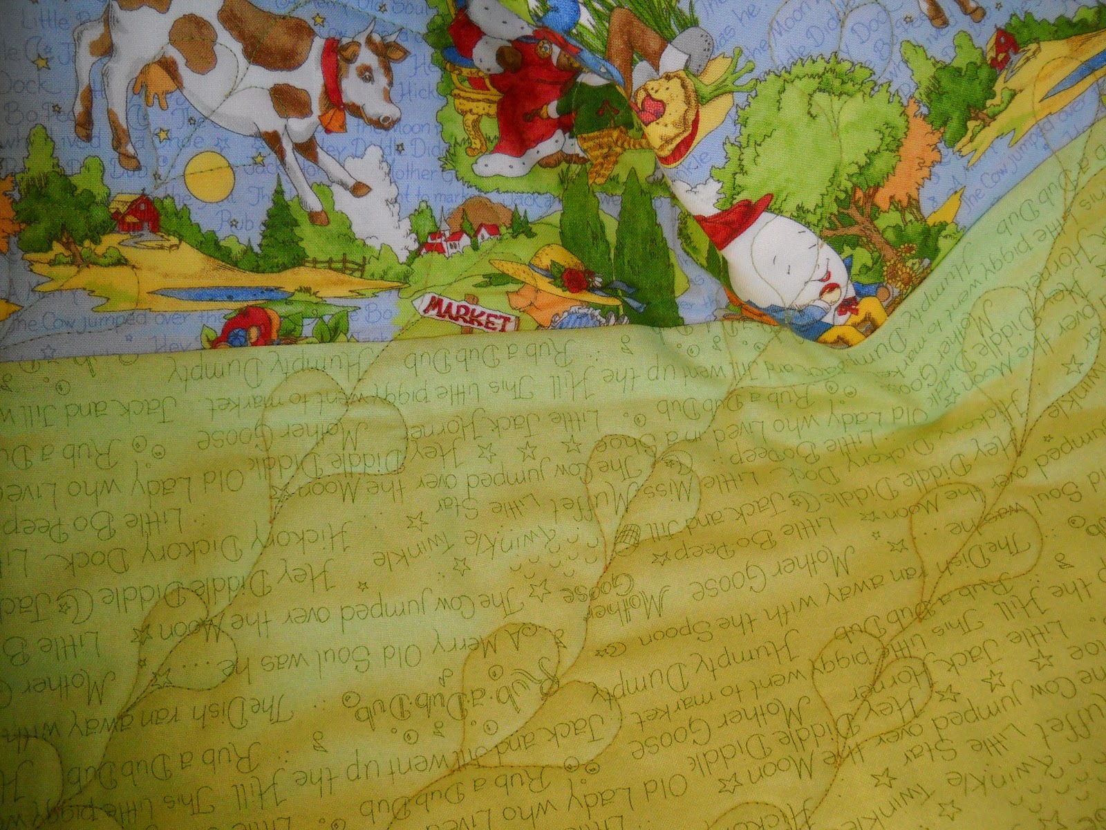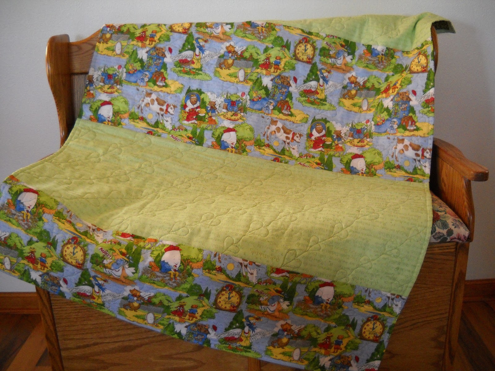 quilt with characters from Mother Goose and Humpty Dumpty and all the