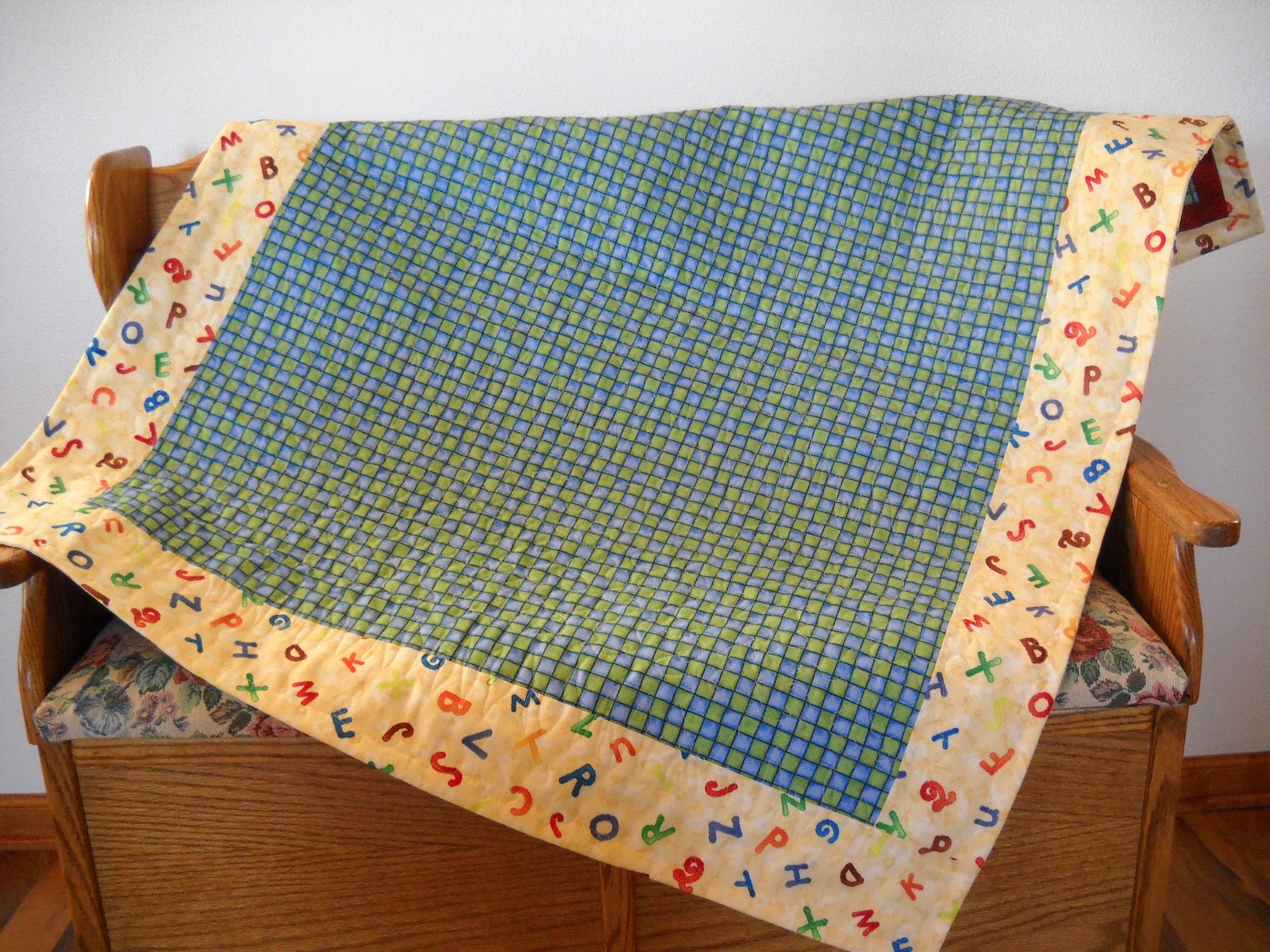 print. It is backed with coordinating alphabet fabric and has a hand sewn