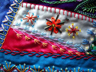 quilting thread. The beads on a lot of today’s crazy quilts are sewn on with a