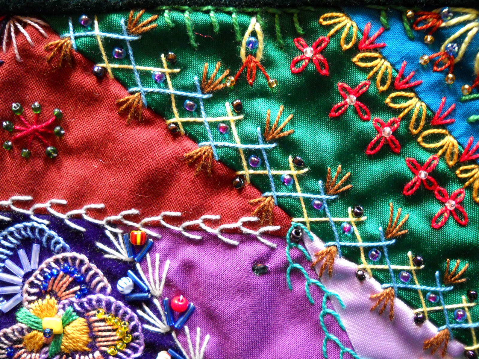 quilting thread. The beads on a lot of today’s crazy quilts are sewn on with a