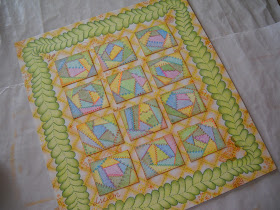 blocks. The quilt was designed on mat board. I added a feathered border and
